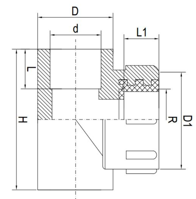 | Mã số | Đường kính | d | D | H | L | D1 | L1 | R |